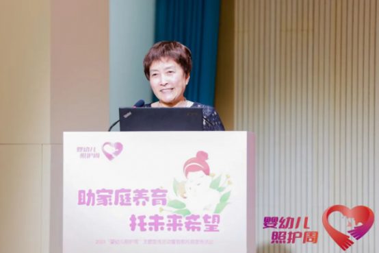 ▲國(guó)家衛(wèi)生健康委婦幼健康司副司長(zhǎng)沈海屏做《兒童早期發(fā)展與嬰幼兒養(yǎng)育照護(hù)》主旨報(bào)告