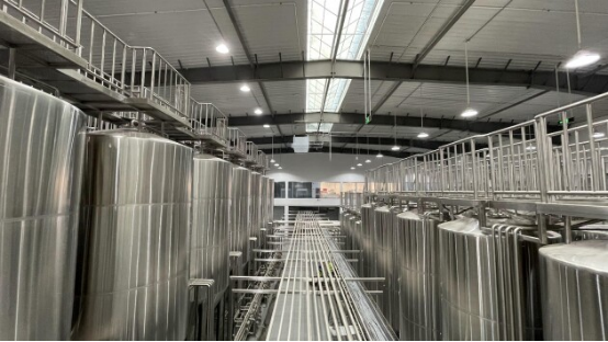 由山東申東智能裝備有限公司和青島貝斯特釀造工程技術有限公司攜手參與設計、制造、安裝、調試的濟南明府城文旅精釀啤酒項目已于2023年6月正式投產,該項目可實現年產5萬千升精釀啤酒。
