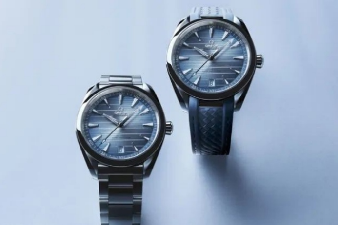 150米這個深度在海洋的層次中屬于照光層。這次歐米茄海馬紀念款在150米的防水區(qū)間,有三款作品。分別是 Aqua Terra 38毫米,41毫米和世界時腕表。表盤淺藍色的漸變層次讓人聯(lián)想到夏日陽光下清澈透明的海水。