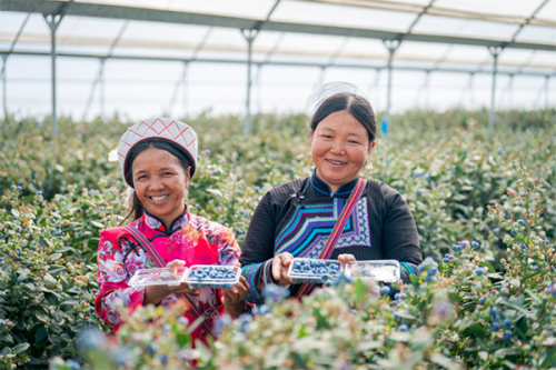 在佳沃(蒙自)藍莓基地工作的少數(shù)民族農(nóng)人