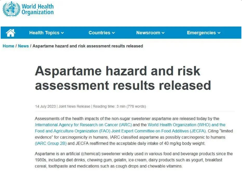 緊接著,國(guó)際飲料協(xié)會(huì)也在官網(wǎng)放話,稱世衛(wèi)組織和糧農(nóng)組織這項(xiàng)里程碑式的發(fā)現(xiàn)經(jīng)過了嚴(yán)格審查,進(jìn)一步增強(qiáng)了人們對(duì)阿斯巴甜安全性的信心,并將在消費(fèi)者考慮減少飲食中糖分和卡路里的所有選擇中發(fā)揮重要作用。
