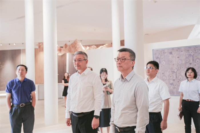陳彥峰一行參觀書香門地集團(tuán)企業(yè)文化展廳、CNAS認(rèn)可實(shí)驗(yàn)室、美學(xué)生活館,了解書香門地集團(tuán)發(fā)展歷程、匠心制造、研發(fā)專利、品牌建設(shè)和質(zhì)量提升等相關(guān)情況,零距離接觸美學(xué)地板,感受“中國(guó)智造”與“美學(xué)設(shè)計(jì)”的獨(dú)特魅力。美學(xué)生活館藝術(shù)長(zhǎng)廊內(nèi),施華洛世奇水晶、彩貝、玉石、花草等元素美學(xué)地板得到來(lái)訪一行領(lǐng)導(dǎo)的高度評(píng)價(jià),稱贊書香門地美學(xué)地板顛覆人們對(duì)地板的傳統(tǒng)認(rèn)知,是新業(yè)態(tài)跨界融合的典范。